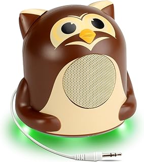 GOgroove Lampe de Chevet Bébé, Mini Veilleuse Enceinte Musique, Haut-Parleur Chambre d'enfant avec Base LED - Lumière Intelligente & Déco - pour Tout Appareil Equipé d'un Port Jack 3.5 mm - Hibou