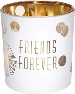 Draeger - Porte Bougie - Photophore Verre à offrir en cadeau à vos proches - Support Bougie en verre Blanc Et Doré - H8 x L7,5 cm message friends forever