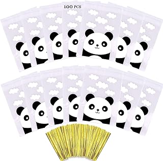 Ulife Mall 100 Pcs Panda Tansparent Sacs à Bonbons, Sac de Cellophane Chocolat Cookies Sachets Adhésifs Sacs à Pochette pour Mariage Anniversaire Noël Plastique OPP Sacs de Cadeau avec Liens Torsadés