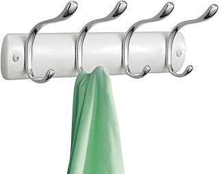 mDesign portemanteau en acier – portemanteau mural avec 8 patères – pour le rangement de manteaux, vestes, écharpes, foulards – couleur : blanc perlé/chrome - lot de 2