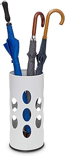 Relaxdays Porte-parapluies rond avec récipient collecteur d'eau support pour parapluies en métal cannes ou bâtons nordiques,H x l x P 49,5 x 22,5 x 22,5 cm - blanc