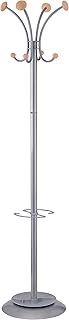 UNILUX Accueil Portemanteau sur Pied à Tête tournante avec 8 Patères Porte-parapluies et Egouttoir 175 x 34 cm Gris métal/Bois hêtre, Acier