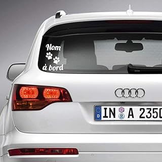 Sticker chien/chat à bord pour voiture NOM Personnalisé Petites Pattes 20 cm Blanc - Anakiss