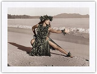 Danse du Honu (Tortue) - Hawaïen Danseur De Danse Polynésienne - Photographie sépia de Alan Houghton c.1960s - Toile Organique Impression d'art 61x81cm