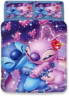KPWHJT Lilo & Stitch Housse De Couette,3 Pièces Parure De Lit Enfant avec Souple 1 Microfibre Housse De Couette Et 2 Taies (Style D,140 x 200 cm)