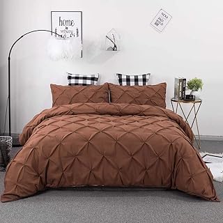 Linge De Lit, Plissée avec Housse de Couette, Housse de Couette, Parure de Lit Housse de Couette et Taies d'oreiller, Microfibre Polyester 100%,Marron,260x230cm