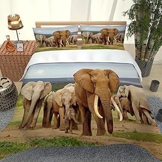 MQBHJI Housse De Couette 140X200 Enfant 3D Éléphant De Savane Africaine - Parure De Lit 1 Personne En Microfibre 2 Pièces Avec Fermeture Éclair, Housse Couette Imprimé Avec 2 Taies D'Oreiller 50x75 cm