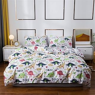 Odot Parure de Lit Housse de Couette 2 Personne/Simple, 2/3 pièces Microfibre Style Nordique Fermeture Confortable Housse De Couette Taies d'oreiller (Monde des Dinosaures,135x200cm(2pc))